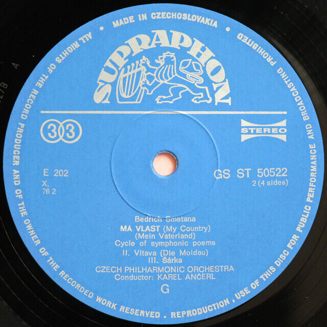 - ― 1963年、ステレオ録音。カレル・アンチェルにとって数ある同曲セッションの記念すべき第1回目の録音で、あまりにも有名な演奏。『わが祖国』と言えばチェコ・フィル、チェコ・フィルと言えば『わが祖国』などと言ったときに、筆頭に上がるのがこの演奏。それにしても日本盤とはまったく音質が異なり、そこがオリジナル盤の音の良さを最も体現できる典型的な録音とも云えましょう。