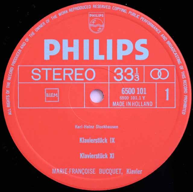 NL PHILIPS 6500 101 - Marie-Françoise Bucquet – Stockhausen / Berio - Klavierstücke Ⅸ & Ⅺ / Cinque Variazioni, Sequenza Ⅳ