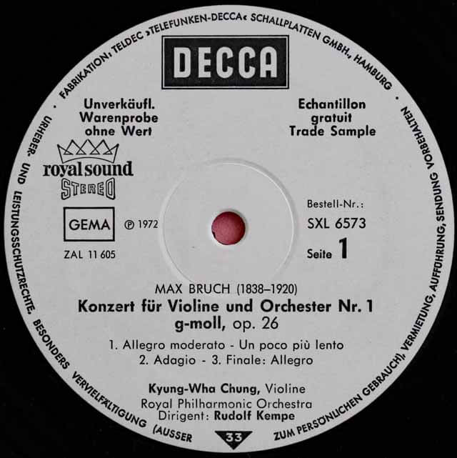 DE DECCA 6.41483 チョン・キョンファ ルドルフ・ケンペ ロイヤル・フィルハーモニー管弦楽団 ブルッフ ヴァイオリン協奏曲1番/スコットランド幻想曲